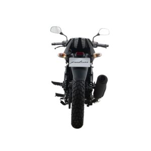 Class-leading power: Ride on! Pulsar 150 promises performance like none other. Enjoy class-leading 10.3 kW (14 PS) power and enhanced 13.25 Nm torque with our patented DTS-i technology. Strikingly sporty: Meet the sportiest 150 ever. This bike is loved for its aggressive dagger-edged graphics, carbon fibre accents, and the iconic wolf-eyed headlamp. There’s nothing on this icon that goes unnoticed. For a thrilling ride: The upright seating position, telescopic front forks and Nitrox rear suspension amplify the thrill of riding a Pulsar. The Bajaj petrol bike merges performance and modern design, offering an exhilarating riding experience. With a top speed of 105 kmph, it’s powered by a 4-stroke, 2-valve, Twin Spark BSVI compliant DTS-I FI engine that generates 10.3 kW (14 PS) at 8,500 rpm and a peak torque of 13.25 Nm at 6,500 rpm. The air-cooled engine, paired with a 5-speed gearbox, delivers smooth and efficient performance. It features a substantial 15-liter fuel tank, making it well-suited for long-distance travel. The bike’s lighting system includes 35W low and high beam headlights, complemented by two pilot lamps and auto headlamp on (AHO) for enhanced visibility. The braking system includes disc brakes at both the front and rear, ensuring reliable stopping power. The bike’s suspension is designed for comfort and stability, with a 37 mm conventional telescopic fork in the front and gas-filled twin shock absorbers with a canister at the rear. Measuring 2055 mm in length, with a saddle height of 1060 mm, ground clearance of 165 mm, and a wheelbase of 1320 mm, it provides a balanced ride with a kerb weight of 148 kg. The semi-digital instrument console is equipped with advanced features, including Bluetooth connectivity, a fuel level indicator, tachometer dial, turn signal indicators (left and right), a side stand indicator, a digital clock, speedometer, odometer, trip meter, and an ABS indicator, ensuring both practicality and a connected riding experience.