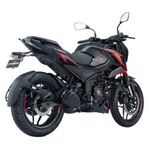 250 cc of thrill: The quarter liter 4 stroke fuel injected engine produces unwavering power of 18kW ( 24.5 PS ) @ 8750 rpm and 21.5 Nm of torque. Features that matter: ABS Ride Modes namely Road, Rain and Offroad will be provided with best optimized ABS intrusion suitable under each mode. Get best precision with front and rear petal disc with dual channel ABS. The Power Of Control:Assist and slipper clutch allows for aggressive downshifting with confidence, along with an effortless clutch pull. The Bajaj motorcycle offers a blend of high performance and advanced features, making it a versatile and powerful machine. It reaches a top speed of 127 kmph, with a motor power of 15 kW (20.4 PS) at 8500 rpm and a maximum torque of 18 kW (24.5 PS) at 8750 rpm. Powered by a single-cylinder, 4-stroke, SOHC, 2-valve, oil-cooled, fuel-injected engine, it ensures efficient cooling and smooth power delivery. The bike is equipped with a 5-speed gearbox and features an inline emission system, contributing to its responsive handling and environmental compliance. With a 14-liter fuel tank, it is well-suited for longer rides. The design is both functional and stylish, featuring a bi-functional LED projector headlamp with LED DRLs, enhancing visibility and adding a modern touch. Alloy wheels further enhance the bike’s aesthetic, while the braking system consists of front and rear disc brakes, ensuring safety and control. The suspension system includes telescopic forks with anti-friction bushes in the front and a 5-way adjustable Nitrox shock absorber at the rear, providing a smooth and comfortable ride. Measuring 1989 mm in length, with a saddle height of 1050 mm, ground clearance of 165 mm, and a wheelbase of 1351 mm, the bike offers a balanced and agile riding experience, supported by its kerb weight of 164 kg.