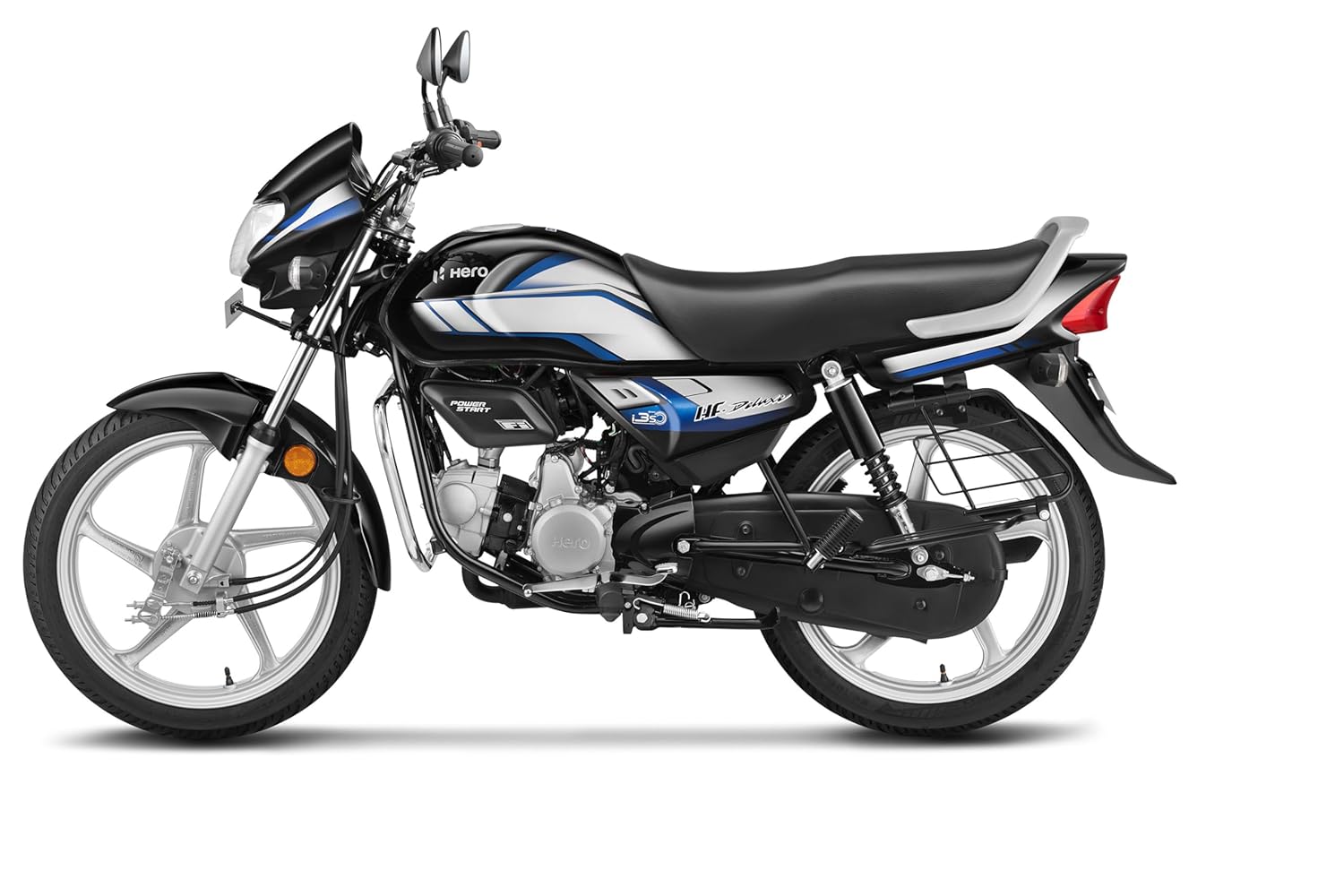 Hero MotoCorp HF Deluxe (Drum) (Self Start) Bike Black Nexus Blue Booking for Ex-Showroom Price